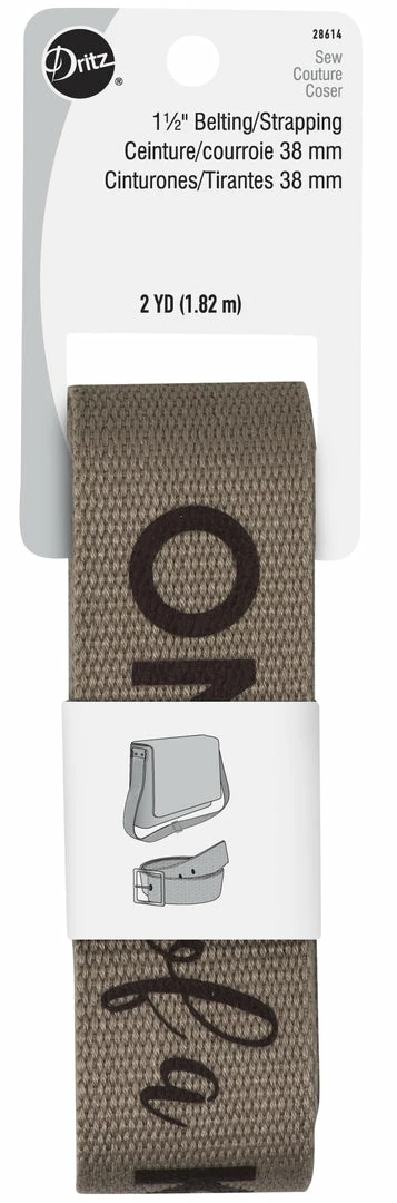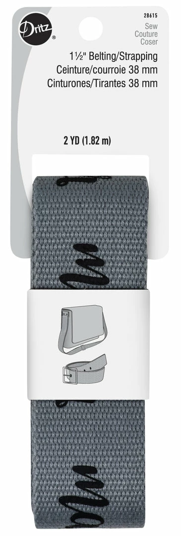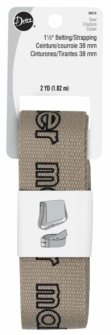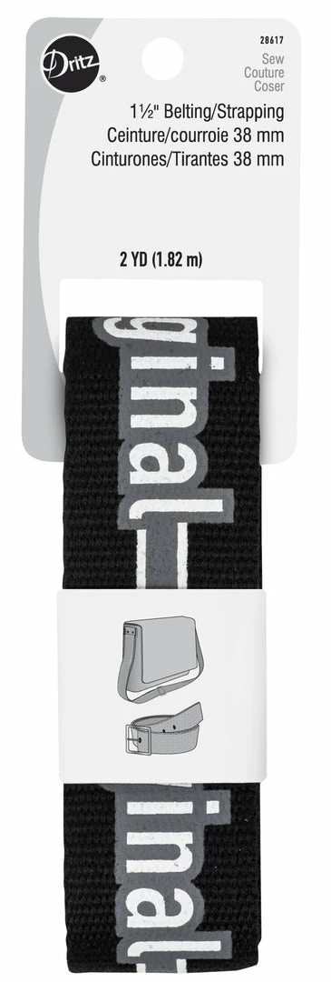 Dritz message belting/strapping has simple words or messages that allow the user to express their personality. The 1-1/2″ wide polyester belting is used for making straps and handles for a variety of sewing projects, such as totes, bags and key fobs.