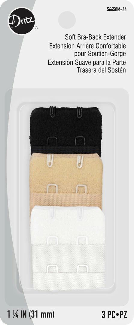 Simply attach Dritz soft bra-back extender to existing bra hooks to extend back for a more comfortable fit.