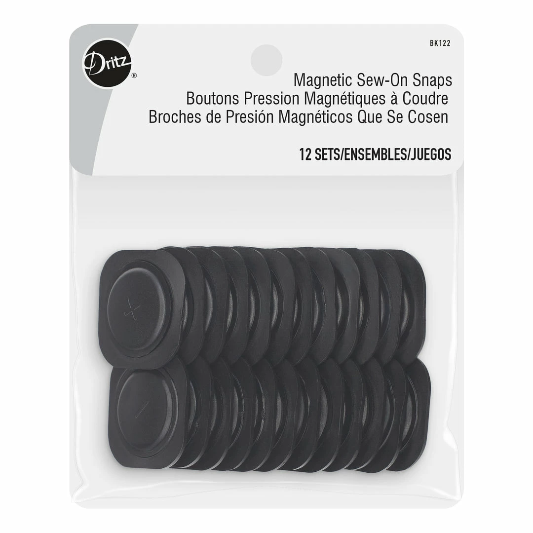 Dritz Square Magnetic Sew-On Snaps are versatile and can be used as an addition to garments, pockets, purses, totes and backpacks. You can even use them on straps for books, albums, boxes and much more. They are easy to sew by simply stitching in grooves around the snap edges. Snap color is black.