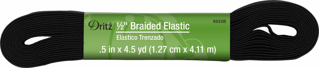 Dritz Braided Elastic is the most basic elastic. It is lightweight, slightly ribbed and it narrows when stretched. It is most often used on necklines, sleeves, waistbands and swimwear waistbands and leg bands.