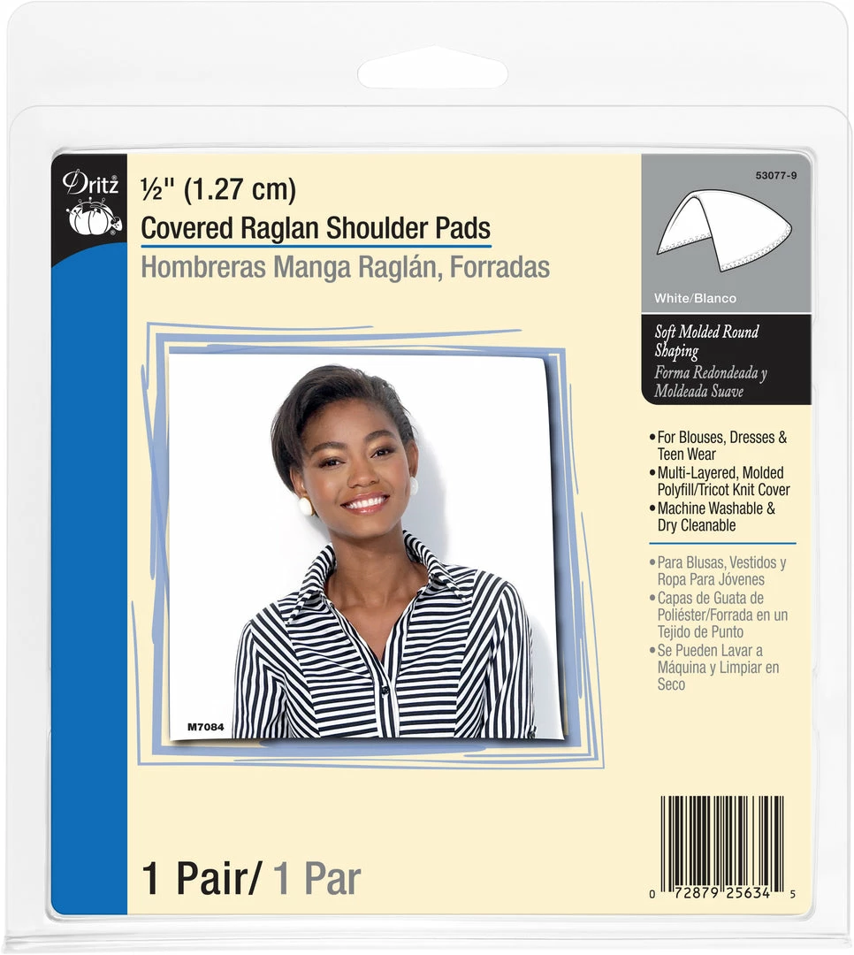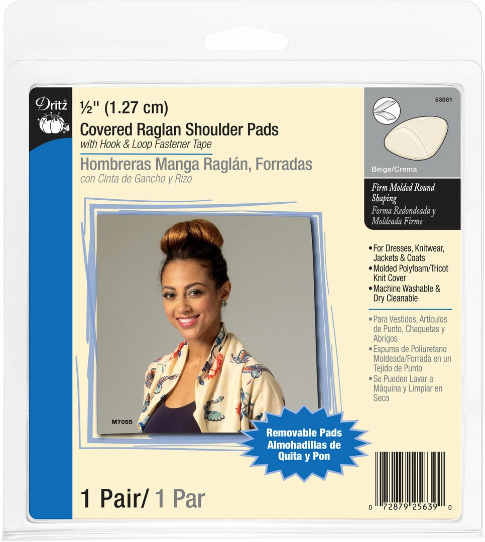 Dritz 1/2″ Covered Raglan Shoulder Pads provide soft molded round shaping to garment sewing projects as well as store-bought clothing. They can be sewn or tacked into garments. Machine washable and dry cleanable.