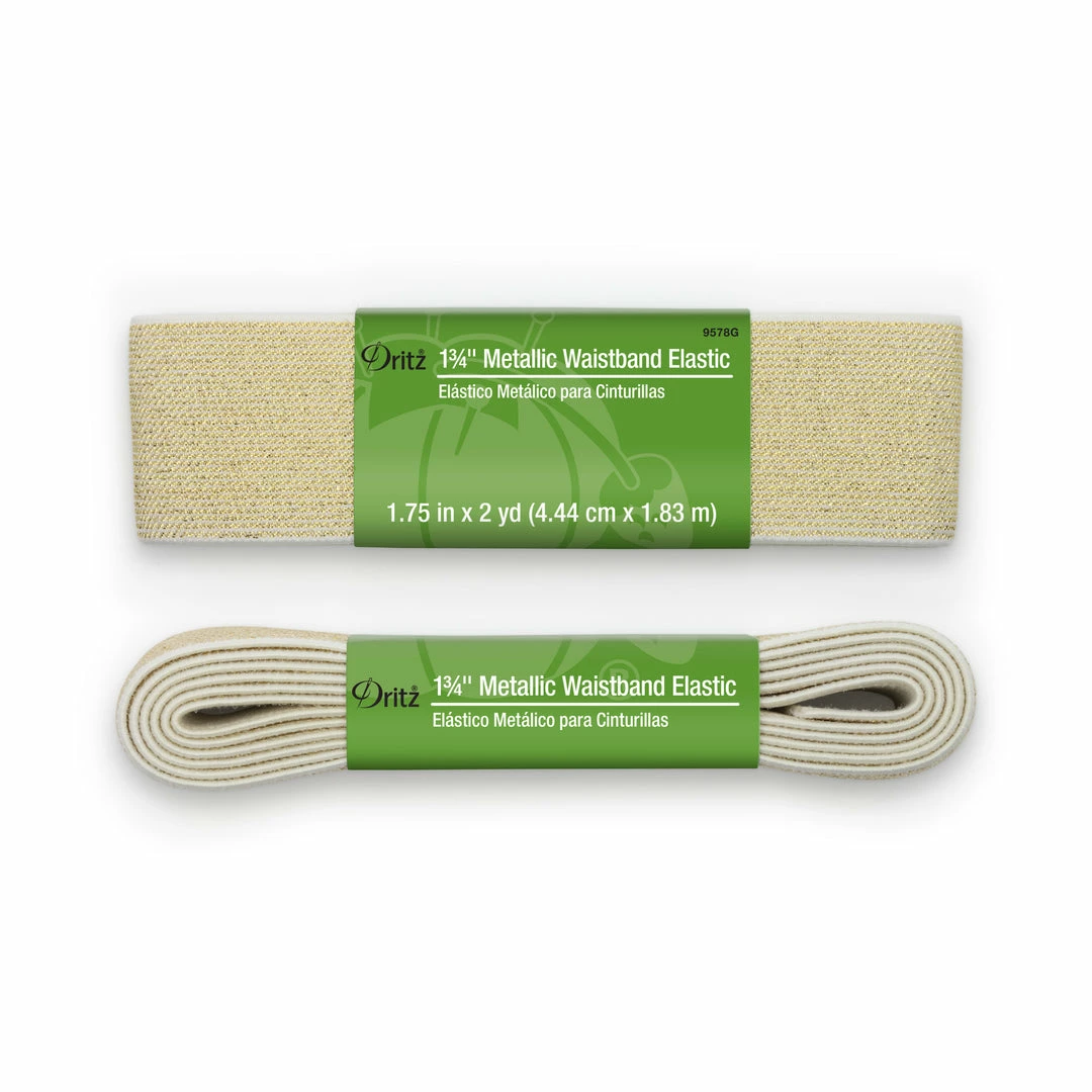 Dritz metallic waistband elastic is a woven elastic that can be used when sewing apparel and accessories. It combines comfort and sparkle for a brilliant addition to easy to sew skirts. From waistbands to belts, this elastic is meant to be seen, and it is hanked to accommodate the larger width and additional length needed for bigger projects.