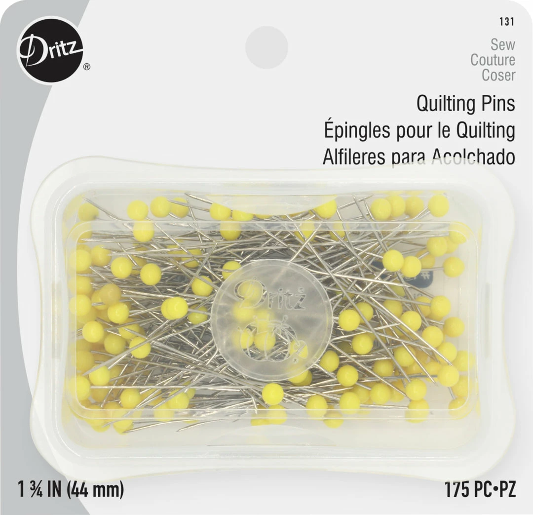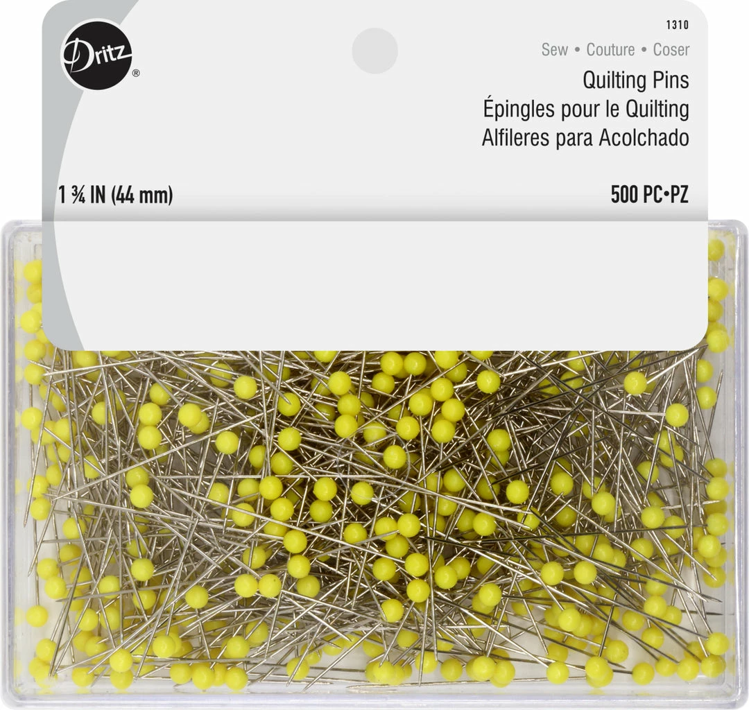 Use Dritz Quilting Pins for basting quilt layers. Ideal for multiple layers of fabric, loose weaves, synthetic furs, plush velvets and bulky fabrics.