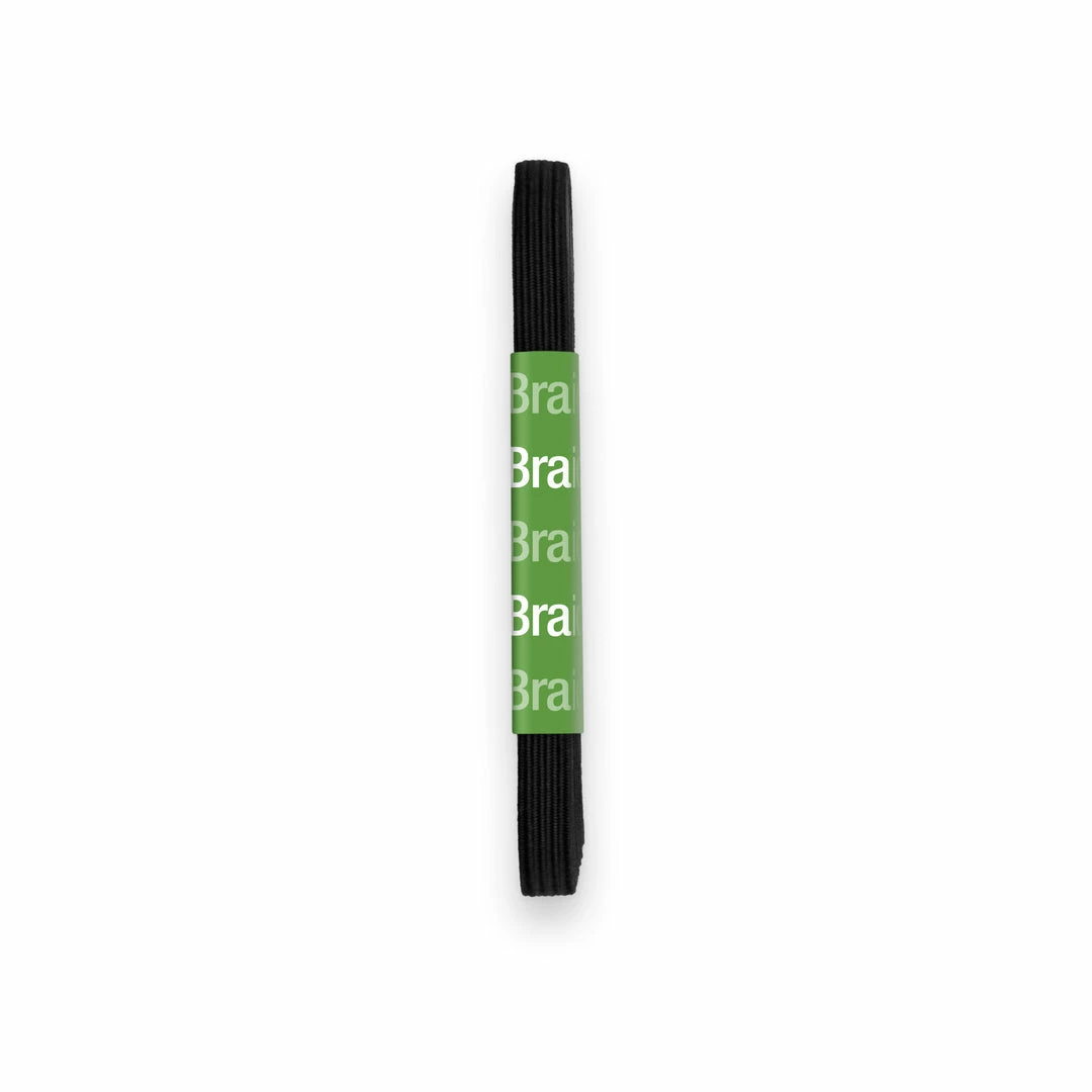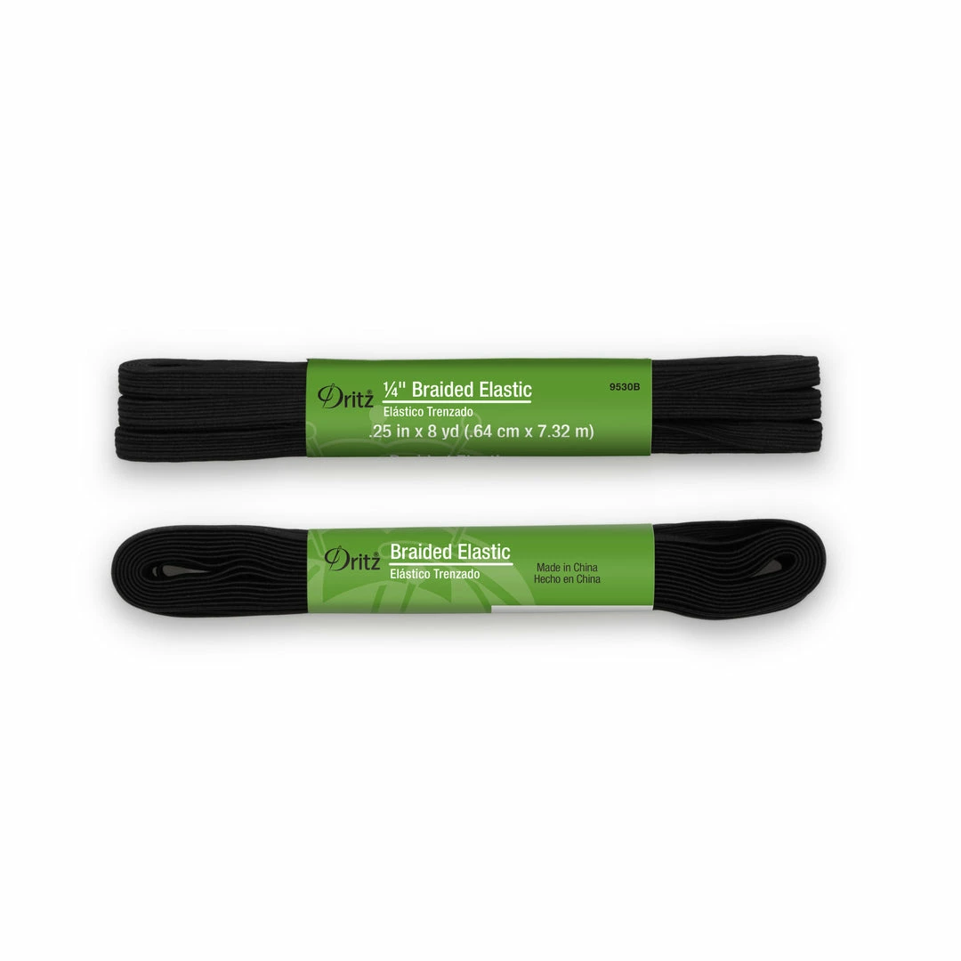 Dritz Braided Elastic is the most basic elastic. It is lightweight, slightly ribbed and it narrows when stretched. It is most often used on necklines, sleeves, waistbands and swimwear waistbands and leg bands.