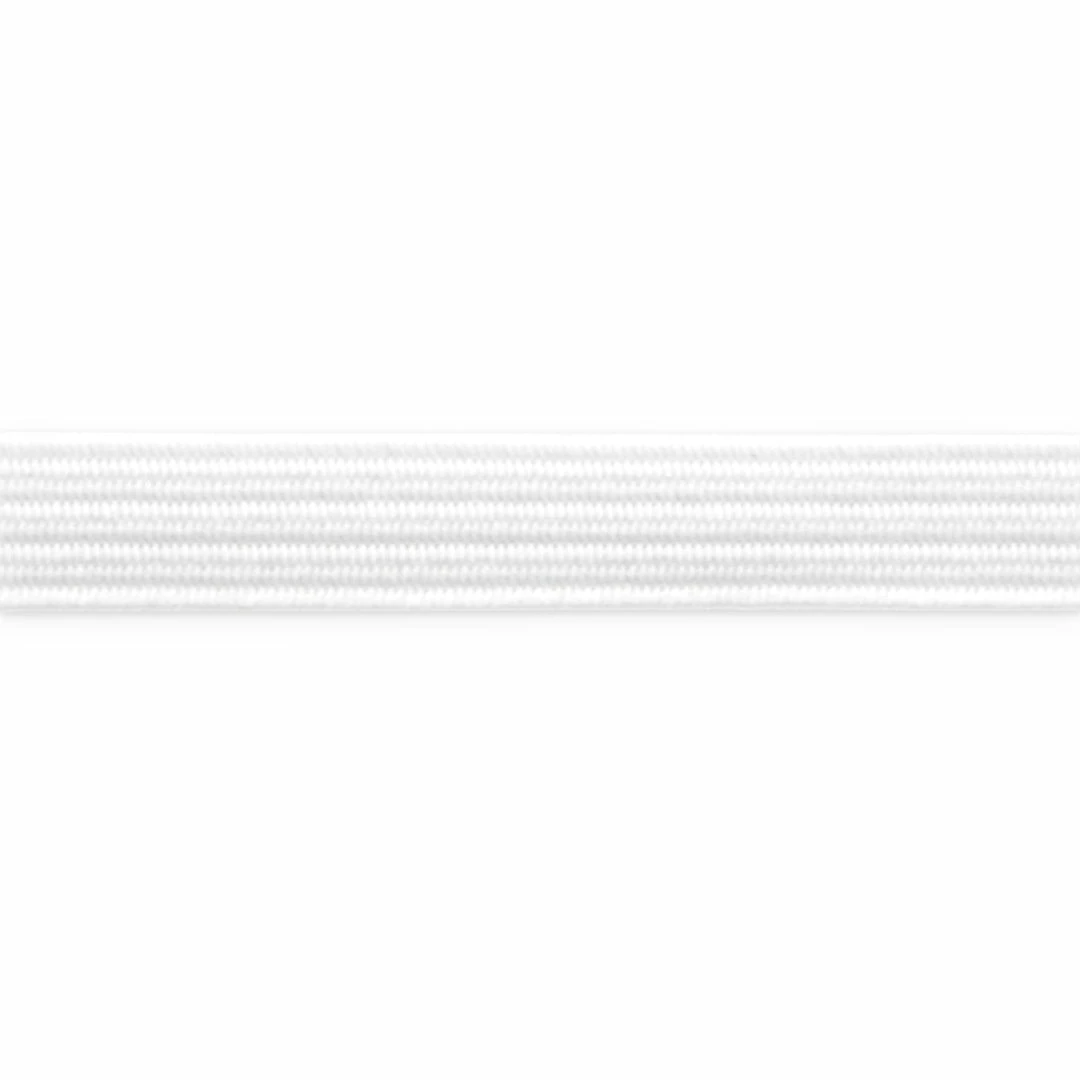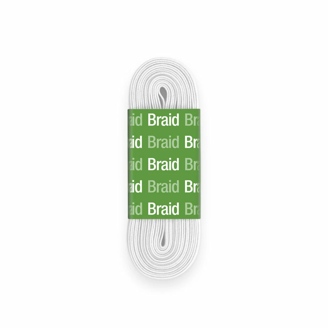 Dritz Braided Elastic is the most basic elastic. It is lightweight, slightly ribbed and it narrows when stretched. It is most often used on necklines, sleeves, waistbands and swimwear waistbands and leg bands.