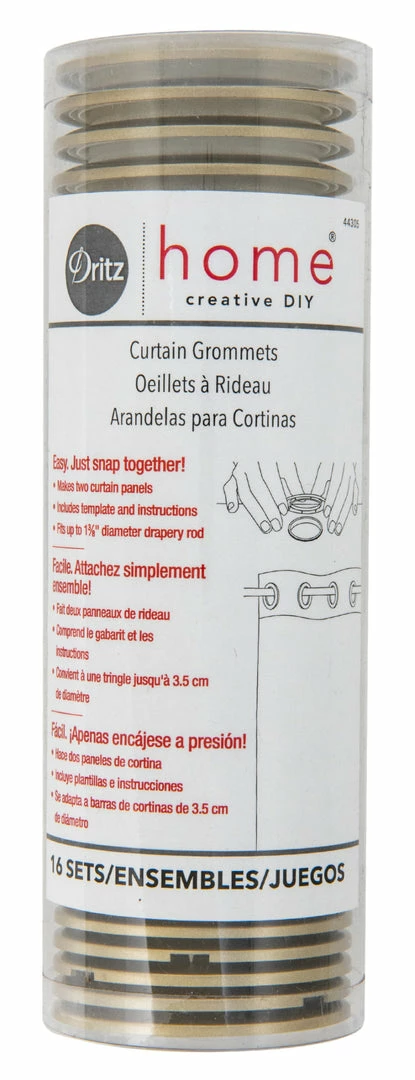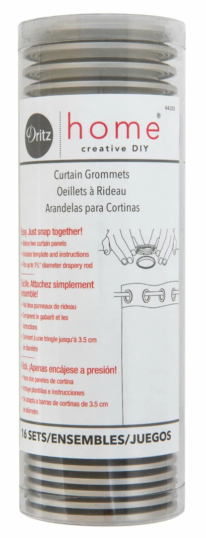 Use Dritz Home curtain grommets to transform a piece of fabric into a curtain panel. The grommets are easy to install and create a series of openings in which to insert a curtain rod and make your panel ready to hang.
