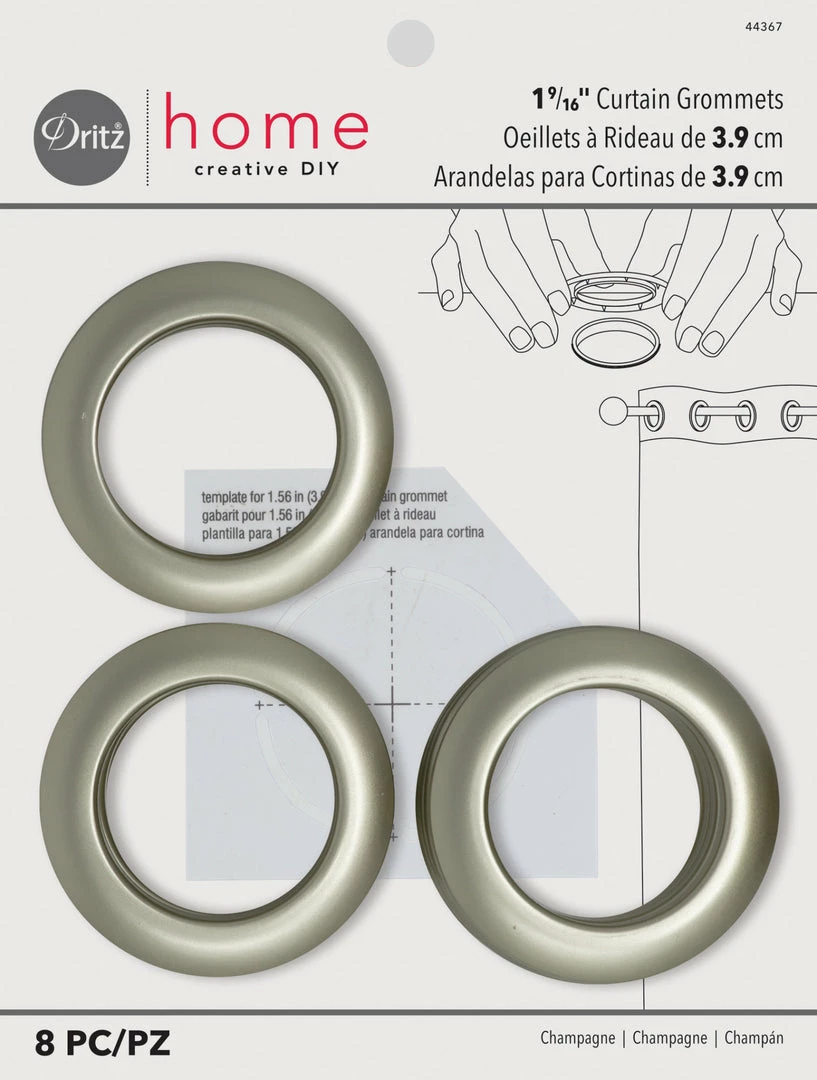 Use Dritz Home curtain grommets to transform a piece of fabric into a curtain panel. Easy to install, these grommets create a series of openings to insert a curtain rod through and allows your panel to hang.