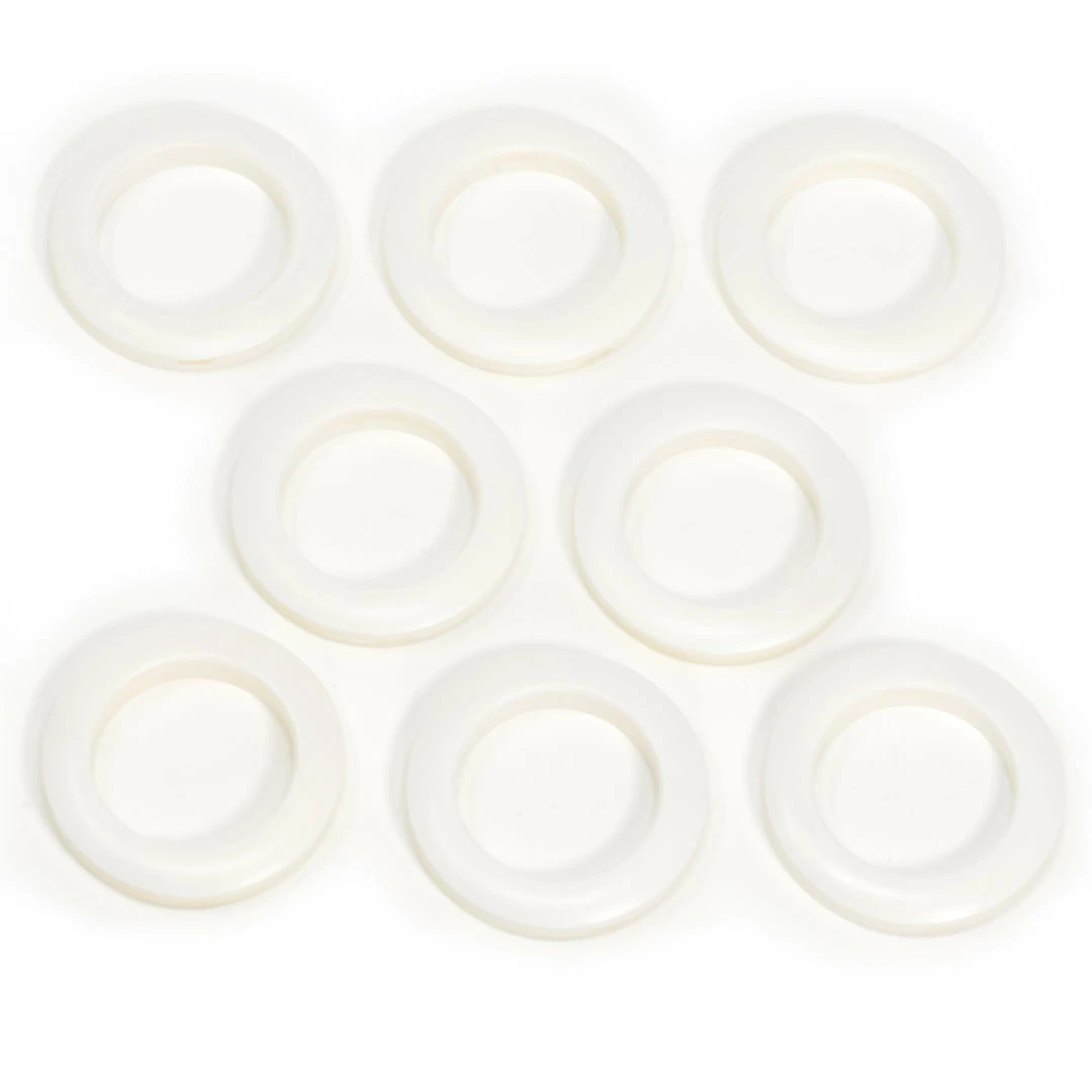 - Package includes (8) sets of 1-9/16-inch inner diameter plastic curtain grommets