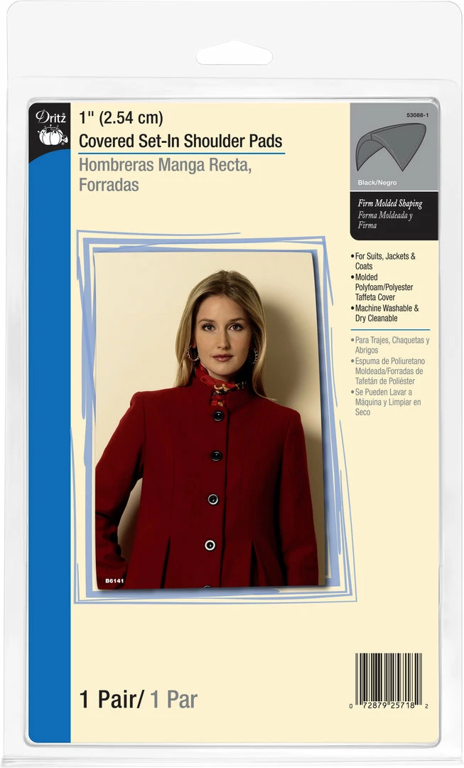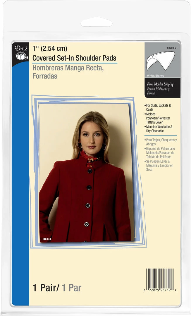 Dritz 1 Inch Covered Set-In Shoulder Pads provide firm molded shaping to garment sewing projects as well as store-bought clothing. Can be sewn or tacked into garments. Machine washable and dry cleanable