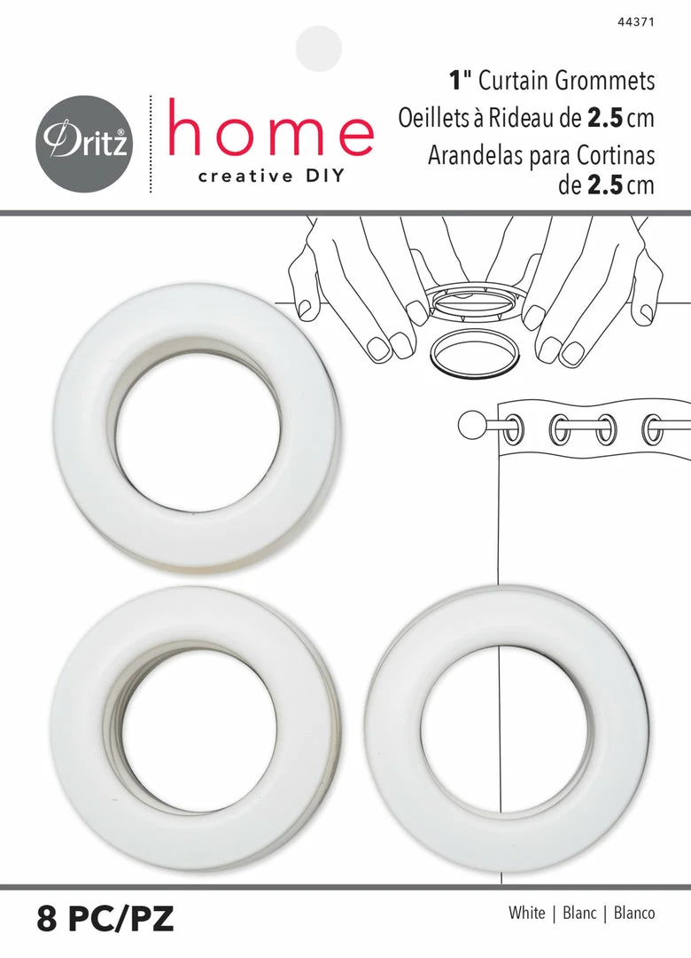- Package includes (8) sets of 1-inch inner diameter plastic curtain grommets