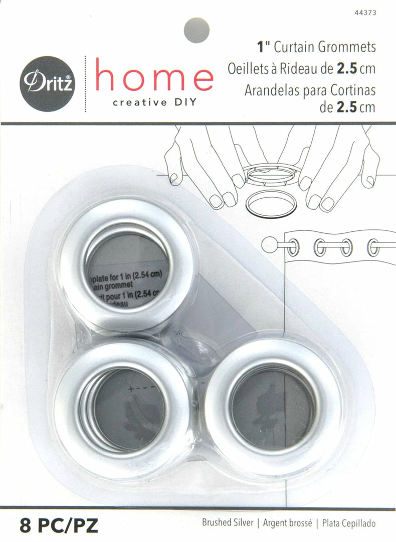 Use Dritz Home curtain grommets to transform a piece of fabric into a curtain panel. Easy to install, these grommets create a series of openings to insert a curtain rod through and allows your panel to hang.