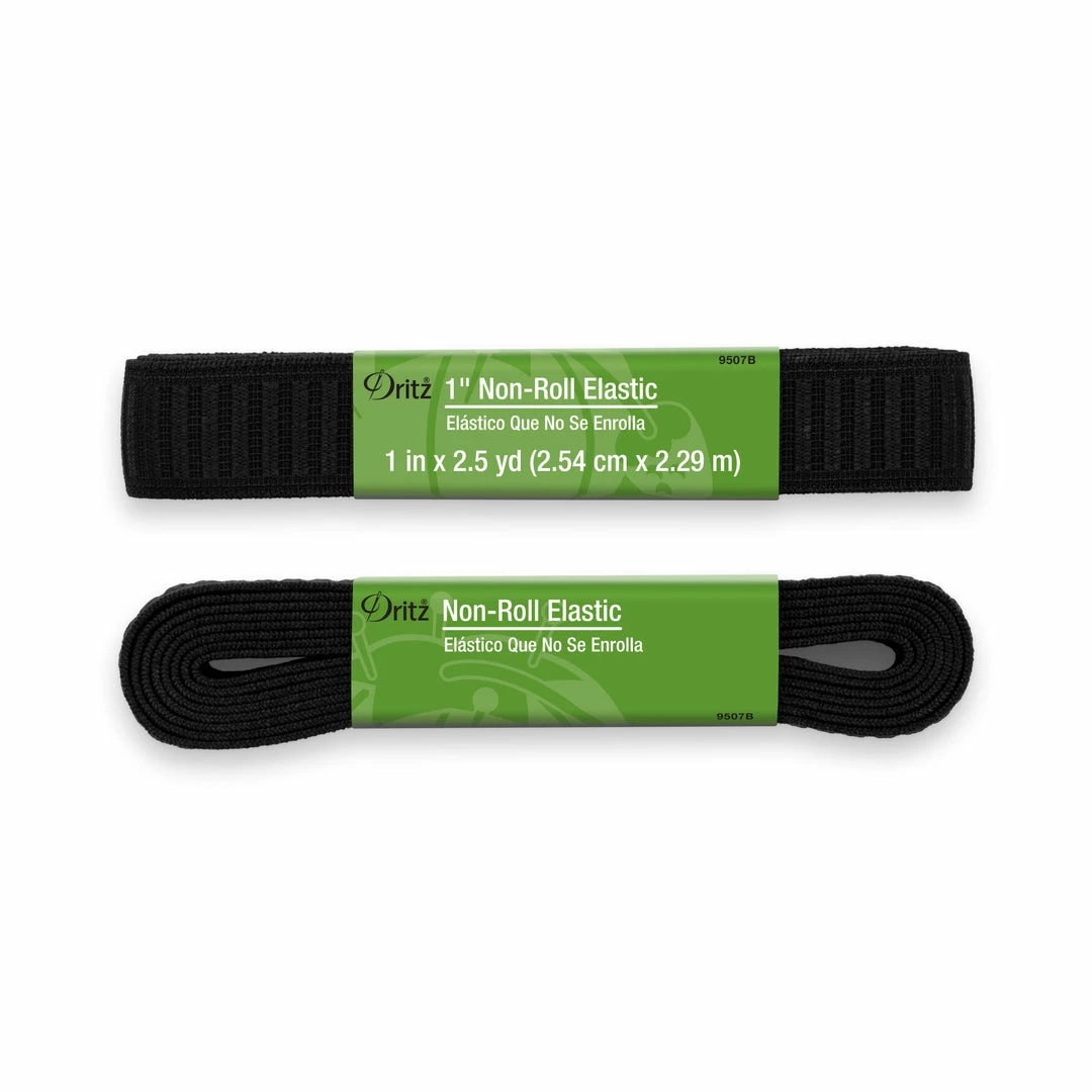 Dritz Non-Roll Woven Elastic resists rolling and twisting. It is used in a variety of applications and is ideal for waistbands, sleeves, and leg bands in light to medium-weight fabrics; such as, shorts, skirts, pants, and blouses.