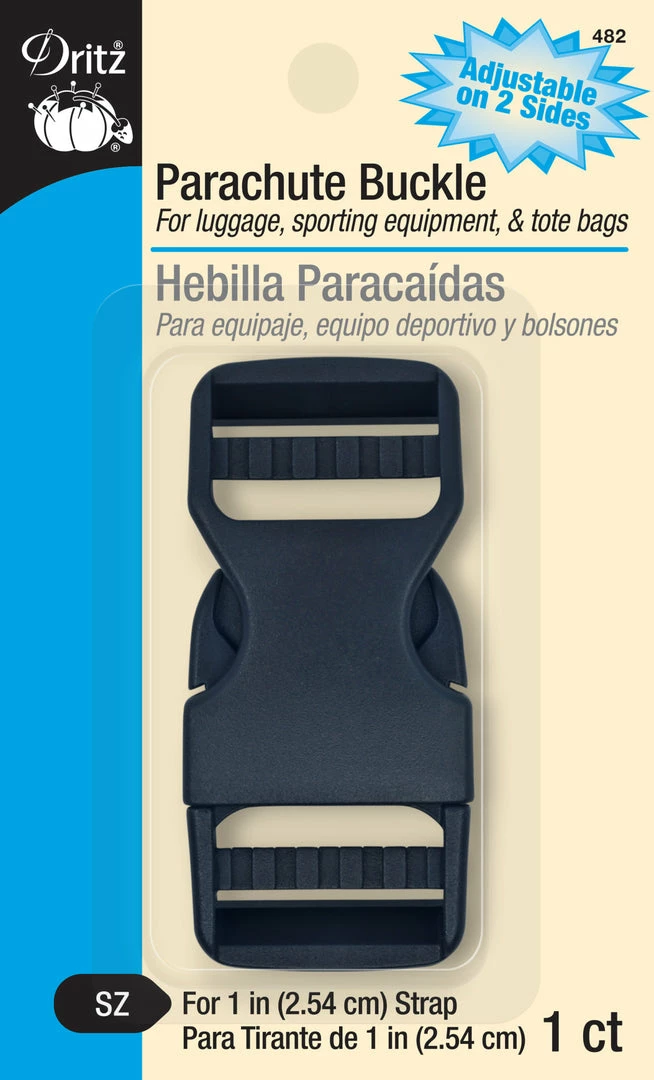 Use the Dritz Parachute Buckle for 1″ wide straps on luggage, sports equipment and tote bags. This package contains one parachute buckle for use with 1″ wide straps.