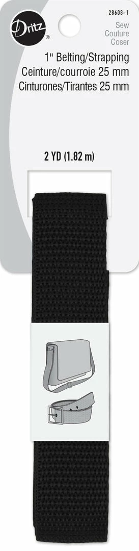 Dritz 1″ wide polypro belting is used for making straps and handles for a variety of sewing projects, such as totes and bags; it is also ideal for DIY belt making.