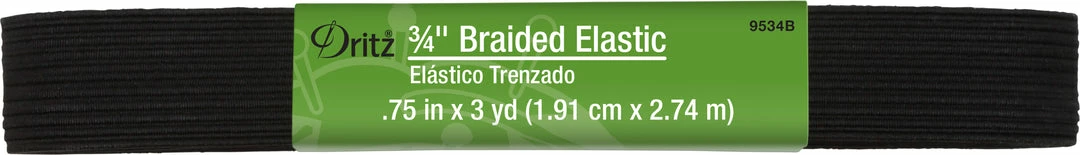 Dritz Braided Elastic is the most basic elastic. It is lightweight, slightly ribbed and it narrows when stretched. It is most often used on necklines, sleeves, waistbands and swimwear waistbands and leg bands.