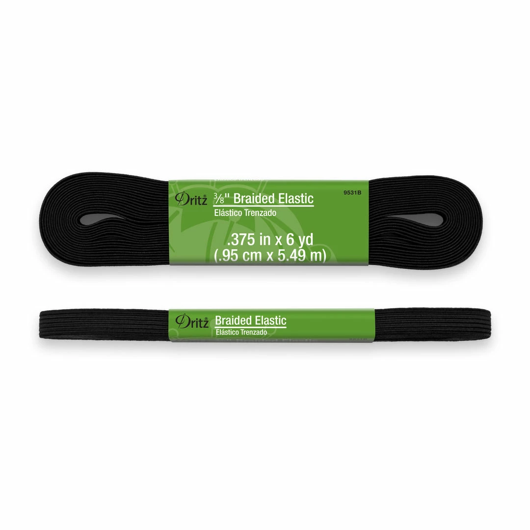 Dritz Braided Elastic is the most basic elastic. It is lightweight, slightly ribbed and it narrows when stretched. It is most often used on necklines, sleeves, waistbands and swimwear waistbands and leg bands.