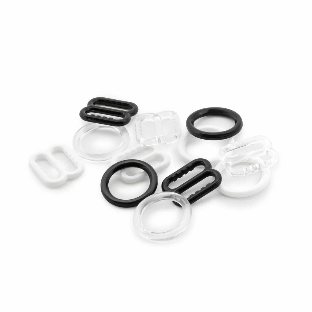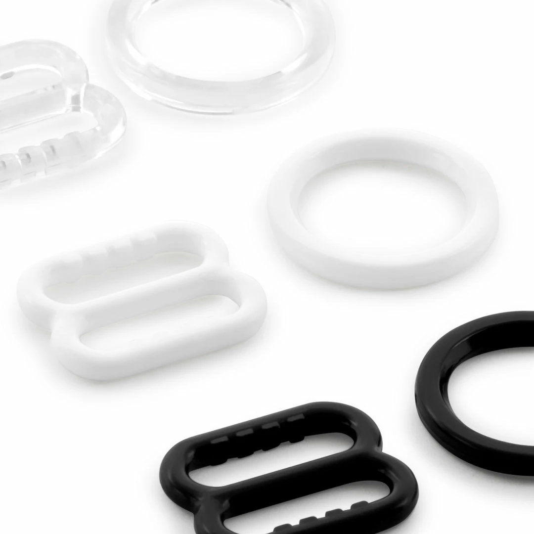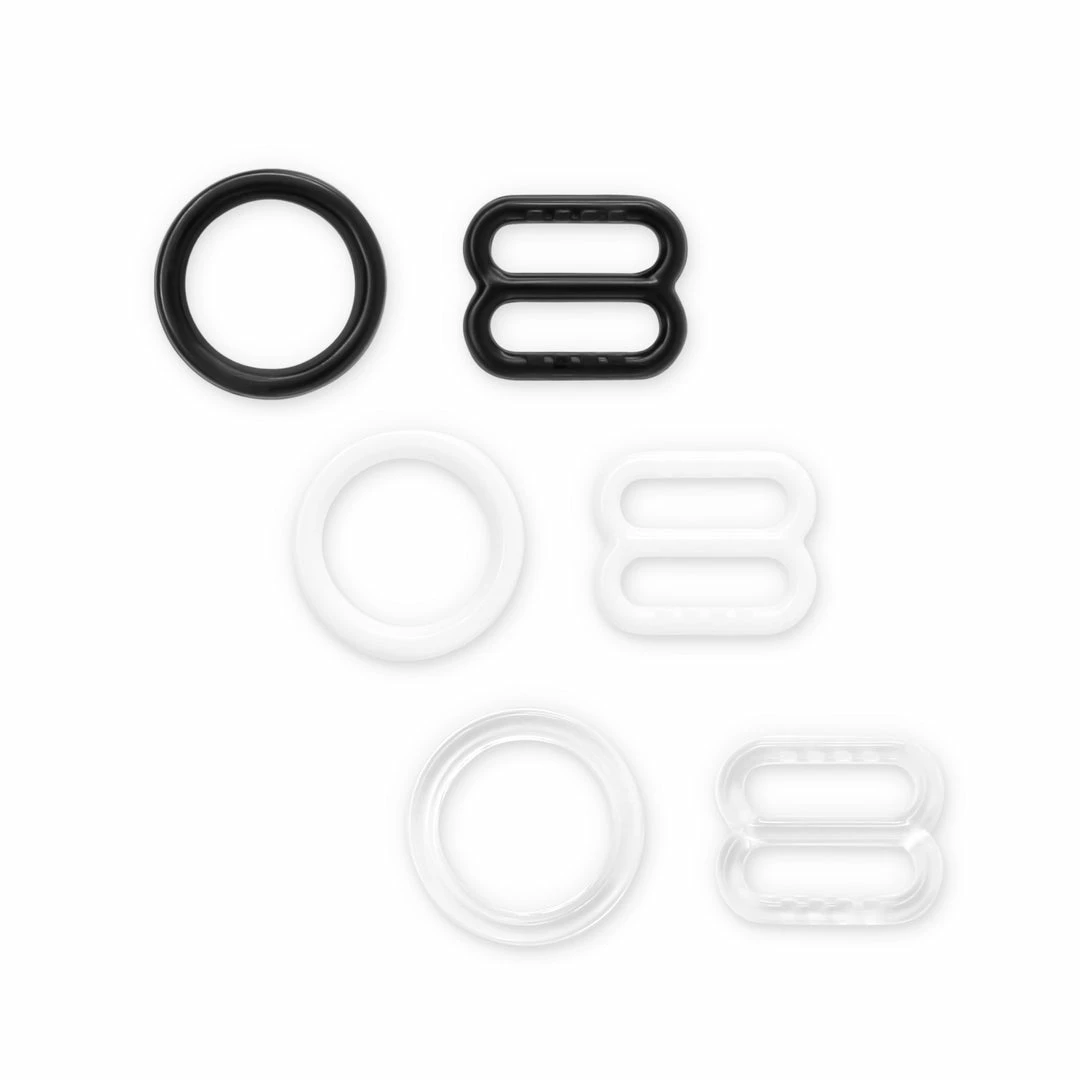 - Package contains clear, black and white Lingerie Strap Slides and Rings