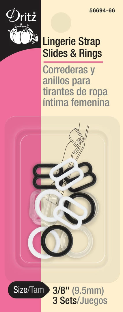 The Dritz lingerie strap slides and rings are designed to make adjustable straps on slip dresses, camisoles and headbands. Ideal for the construction and replacement of innerwear, these can even be used as decorative accents for contrast tube tops, blouses and tank tops.