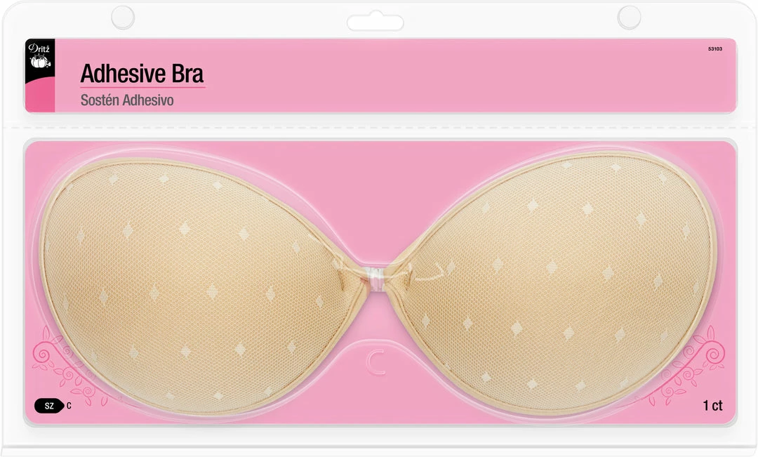 Dritz Adhesive Bras provide freedom from straps. They’re ideal when wearing formal or warm-weather fashions, and they’re also perfect for backless garments. They can be reused up to 25 times, and stored in the handy snap-together packaging. Non-toxic and hypo-allergenic. Available in 4 sizes (A-D). Care: hand wash with warm water and mild soap, and air dry.