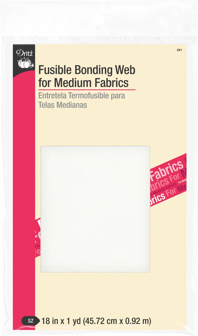 Dritz Fusible Bonding Web – Medium – White – 18″ x 1 yd. is a great no-sew tool for quick and easy results. Great for hems, trims and belts. Washable and dry cleanable; 100% Polyamide;
