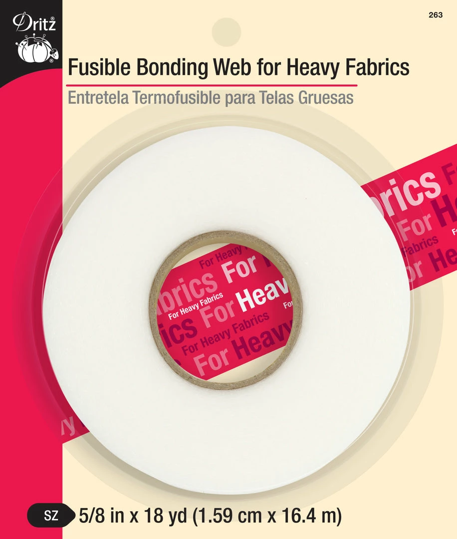 Dritz Fusible Bonding Web for Heavy Weight Fabrics – White- 5/8″ x 18 yds. is a great no-sew tool for quick and easy results. Great for hems, trims and belts. Washable and dry cleanable; 100% Polyamide;