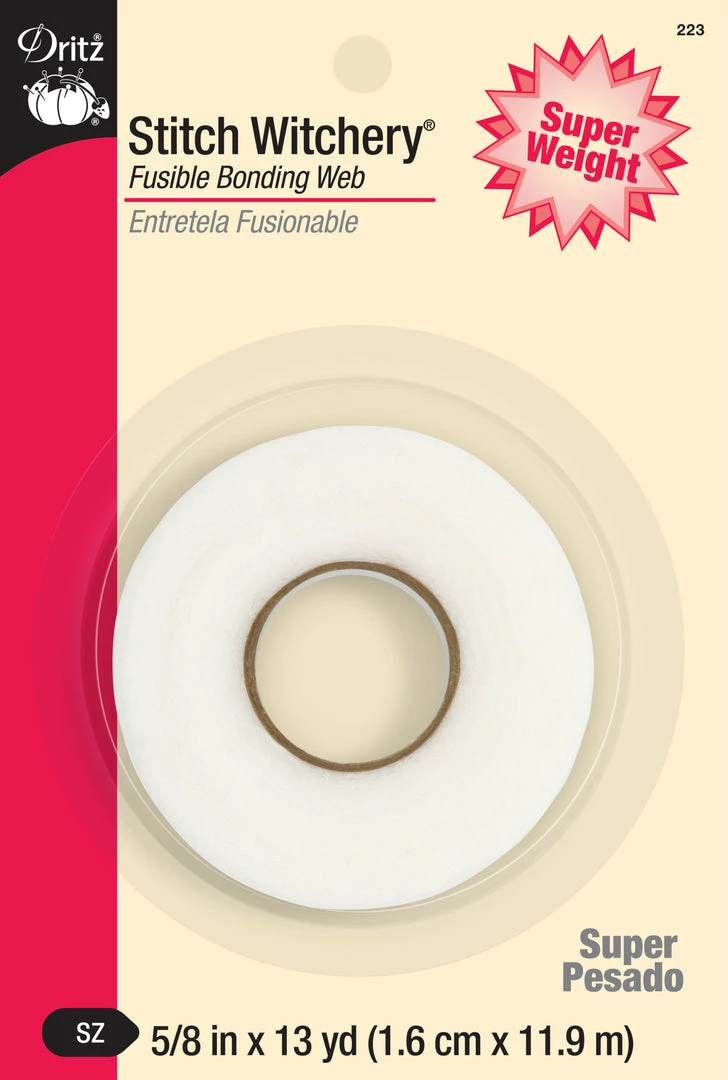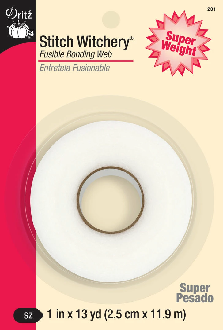 Dritz Stitch Witchery fusible bonding web is great for quick fixes and easy no-sew projects. Available in assorted weights and widths for all your sewing or crafting needs. Great for hems, trims and belts. This product is machine washable and dry cleanable.