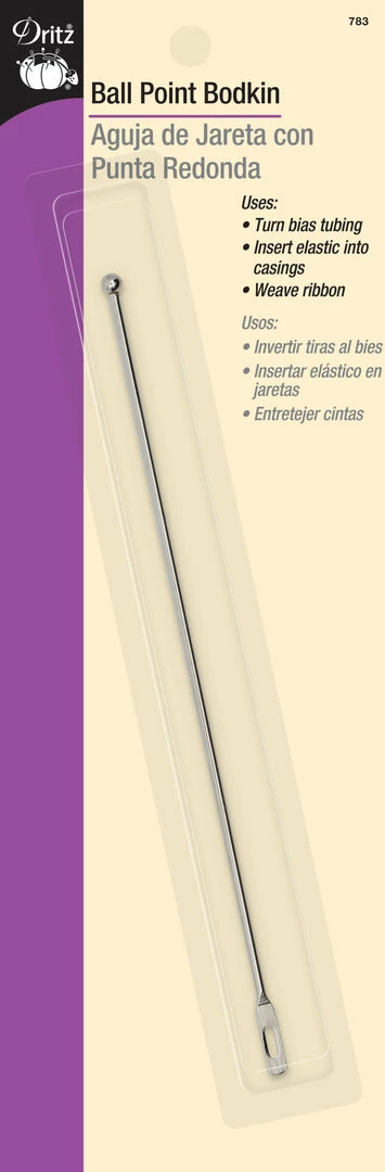 For more intricate needlework, the Dritz Ball Point Bodkin is a handy tool to have in your sewing kit. This slender 6-inch bodkin needle is light and handy, while being efficient and functional. It features a ballpoint end, making it perfect to thread trims and weave ribbons. It’s also a quick and effective means of turning bias tubing for button loops, frog closures, inserting elastic into casings and more.