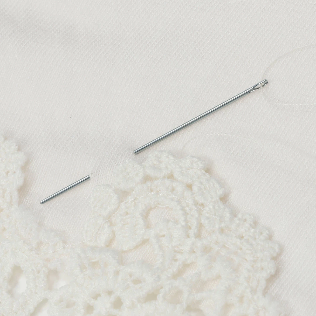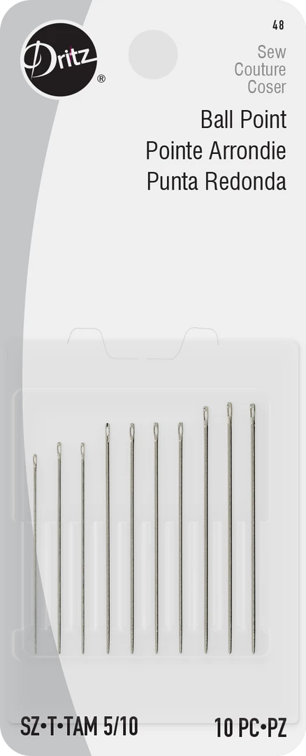 Use the Dritz Ball Point Hand Needles Size 5/10 Pack of 10 for a seamless sewing experience. This package contains ten ball point size 5/10 needles that are perfect for use on knit and stretch fabrics. As opposed to a sharp point that may pierce the fabric, the rounded ends of these ball point needles push the knit loops apart, making it easy for you to sew. They are a must-have in any needlework enthusiast’s kit!
