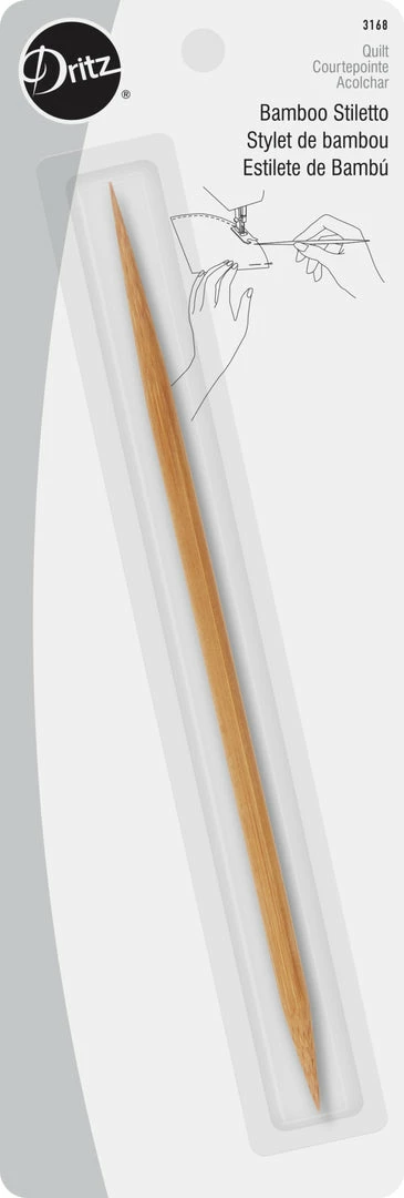 The Dritz Bamboo Stiletto has sharp tips that will grab and adjust fabric when stitching straight or curved seams. The sharp point keeps fabric from shifting to the side when sewing end of seams. Use the stiletto to turn under seam allowances when pressing appliques.It also helps position trims and embellishments when machine stitching in place.