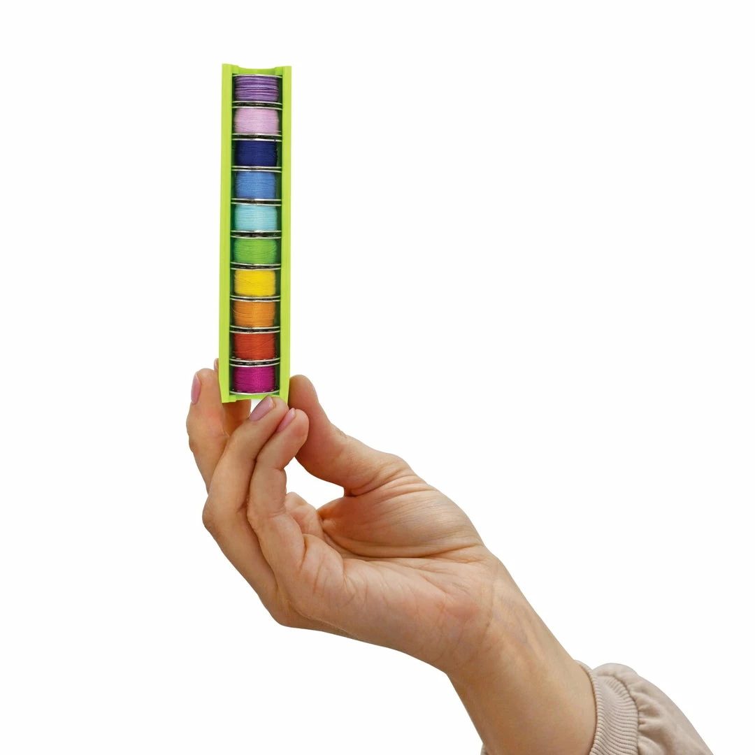The Dritz Bobbin Boat is compact enough to slip into the side pocket of a rolling sewing machine tote or throw into a small sewing basket, all while keeping bobbins neat and tidy.
