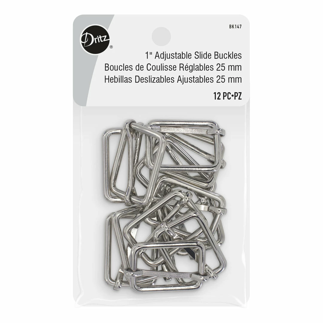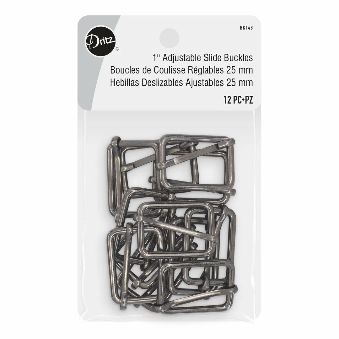 The Dritz Adjustable Slide Buckles are designed to make straps adjustable to any length providing you a comfortable fit. The buckles have a rectangle shape with a moveable center bar that slides to one side and locks the strap fabric into place. A must have for bag and purse construction. For 1″ wide straps on purses, bags, backpacks and luggage.