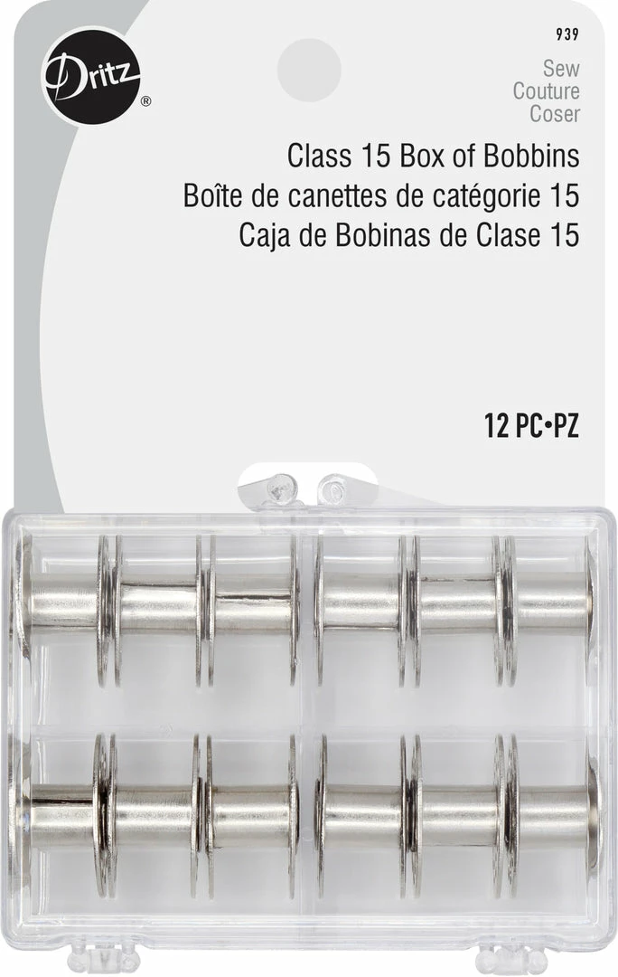 Organize your sewing threads neatly with the Dritz Class 15 Reusable Bobbins. This pack contains 12 Class 15 bobbins in a plastic case that can be used to keep your threads in place when not in use. These metal bobbins are designed to fit in all Singer Class 15 models and machines like Baby Lock, Riccar, Simplicity and White.
