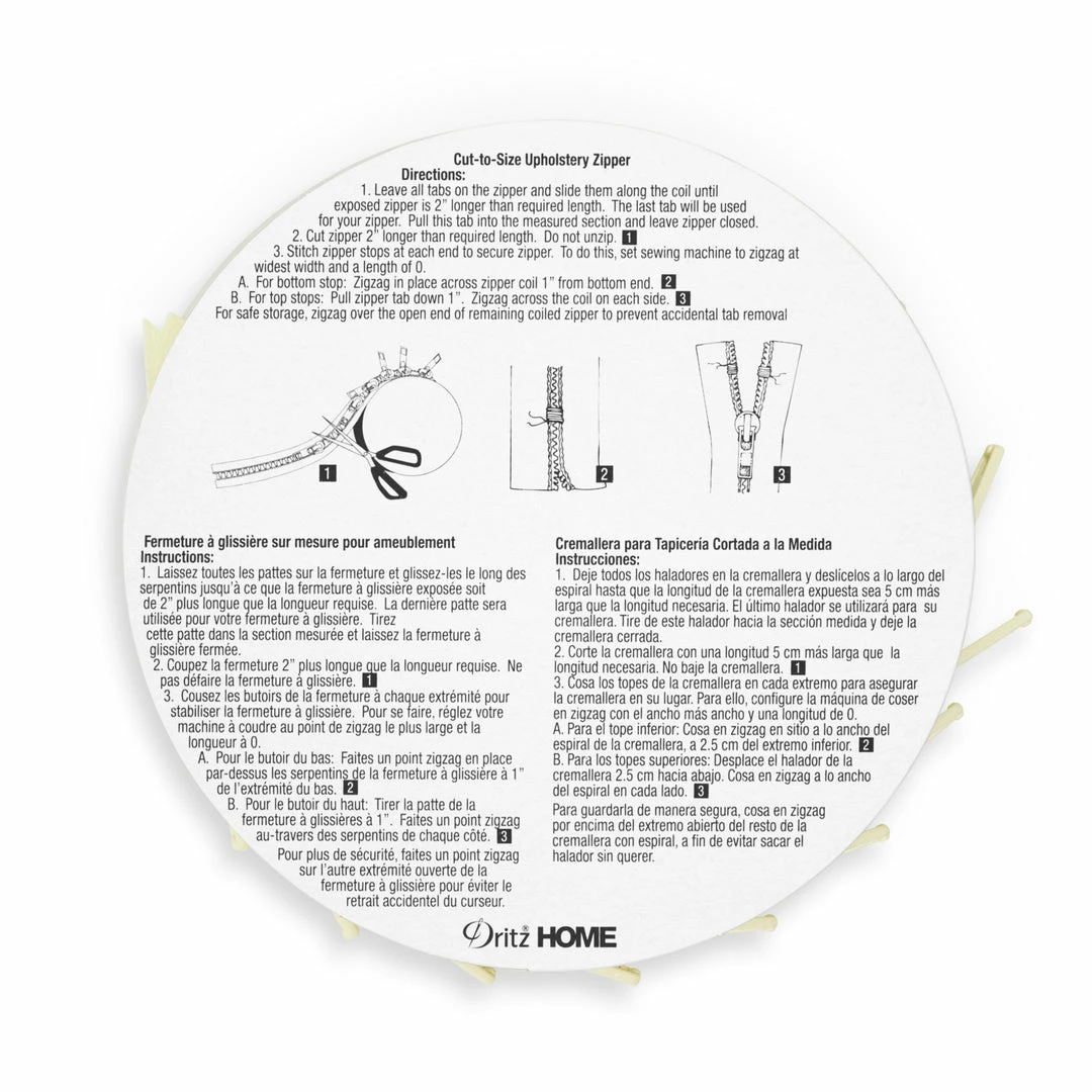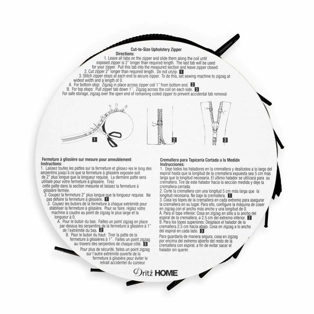 Create stylish and protective zippered covers for your upholstery with the Dritz Home Cut-to-Size Upholstery Zipper. It is ideal for use with pillows, seat cushions, slipcovers and other upholstery items. Makes up to 12 zippers, and zipper slides are already attached.
