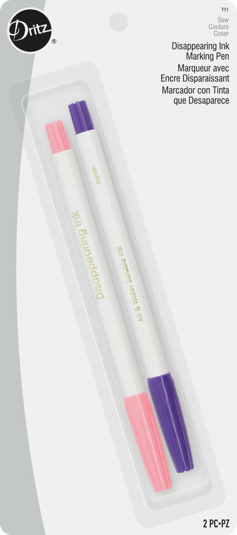The Dritz Disappearing Ink Marking Pens are specially formulated to remove any incorrect markings in your needlecraft and quilting designs. Once your work is complete, you can easily wipe off the marks with the help of a damp cloth. These marking pens contain a water-soluble disappearing ink, which does the trick. It’s a simple and efficient way to make your job easy. Use these pens on washable fabrics for best results.