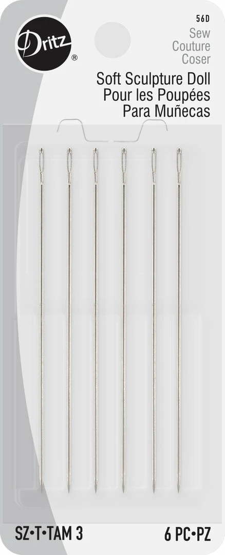 The Dritz Soft Sculpture Doll Needles 3″ Pack of 6 are ideal for soft toy and teddy bear makers and cloth doll artists. This package features six 3-inch long needles with long eyes. Use these superior quality doll needles for soft sculpturing on dolls, particularly facial details and hair. You can also use them for upholstery and
