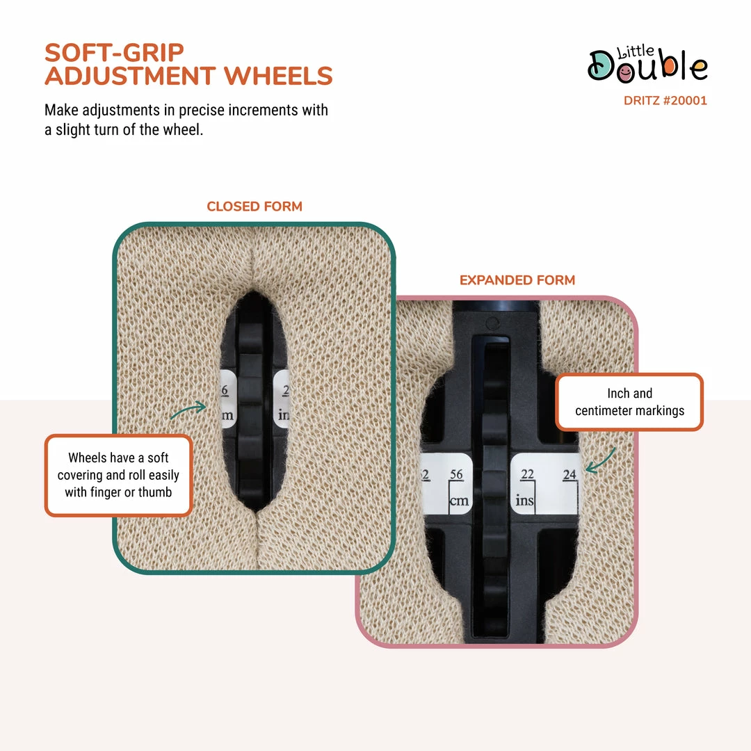 - Soft-grip adjustment wheels roll easily with finger and include inch and centimeter markings