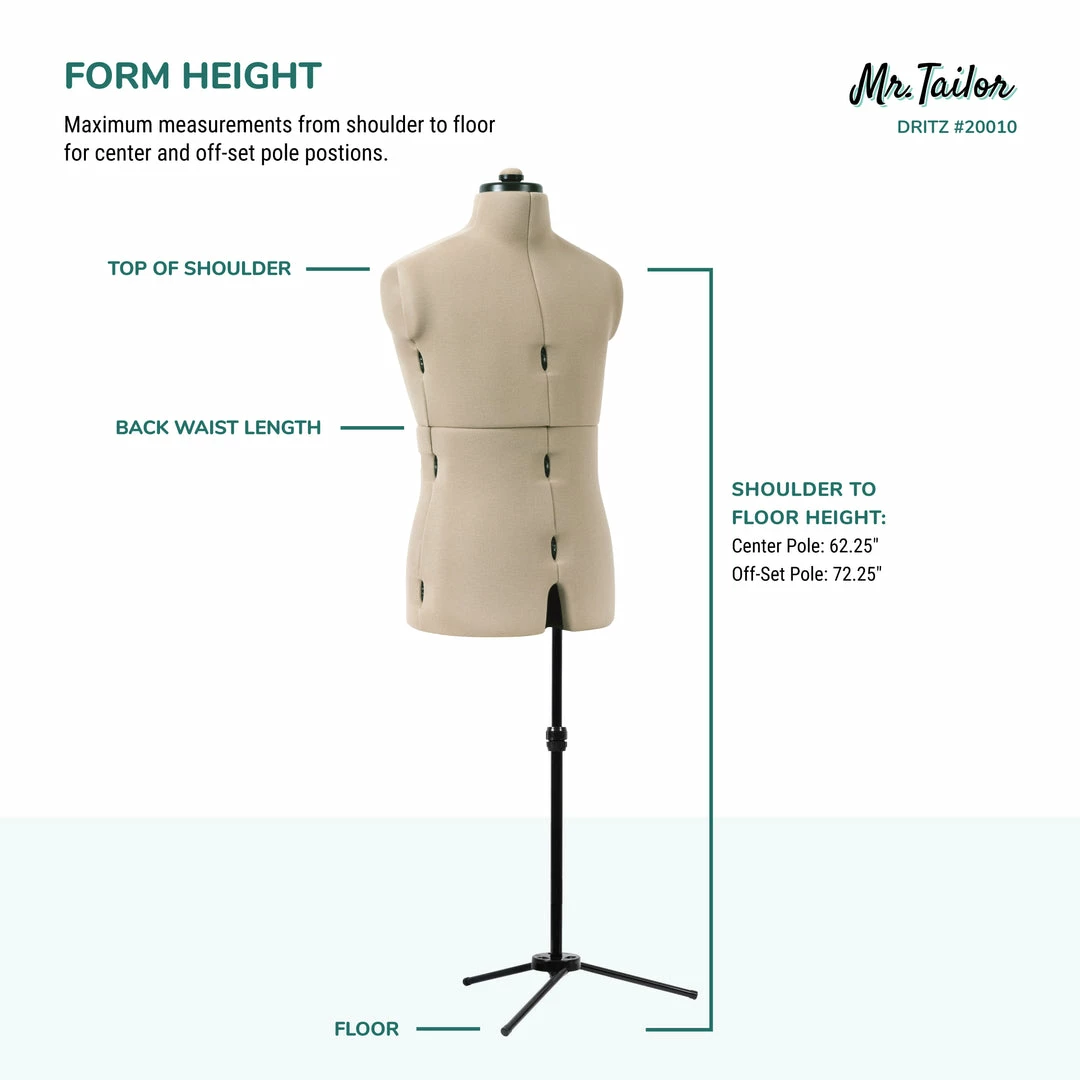 - Adjustable Height: Expandable metal pole allows customization of form height to match man’s shoulder to floor Length measurement