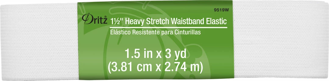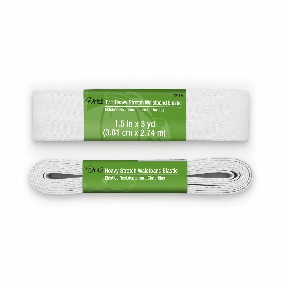 Dritz Heavy Stretch Waistband Knit Elastic is a strong, stiff stretch elastic for heavier fabrics. It is great for cuff bands, waistbands and jacket waistbands.