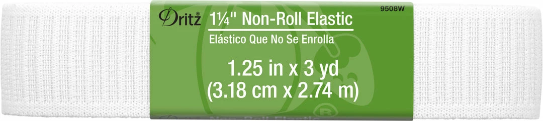 Dritz Non-Roll Woven Elastic resists rolling and twisting. It is used in a variety of applications and is ideal for waistbands, sleeves, and leg bands in light to medium-weight fabrics; such as, shorts, skirts, pants, and blouses.