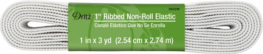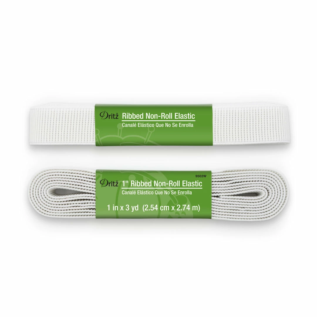 Dritz Ribbed Non-Roll Woven Elastic resists rolling and twisting. The ribbed structures provide maximum strength to prevent the elastic from curling and rolling. It is used in a variety of applications and is ideal for waistbands in heavier fabric shorts, skirts, pants, etc.