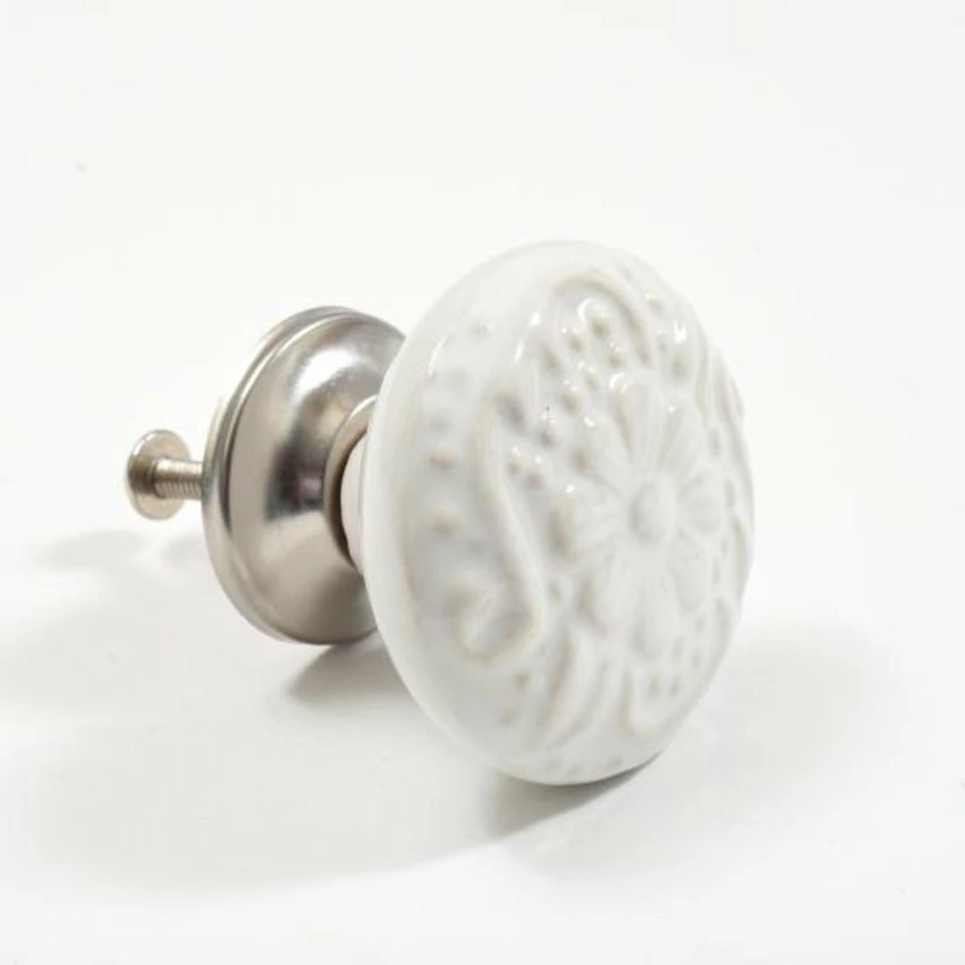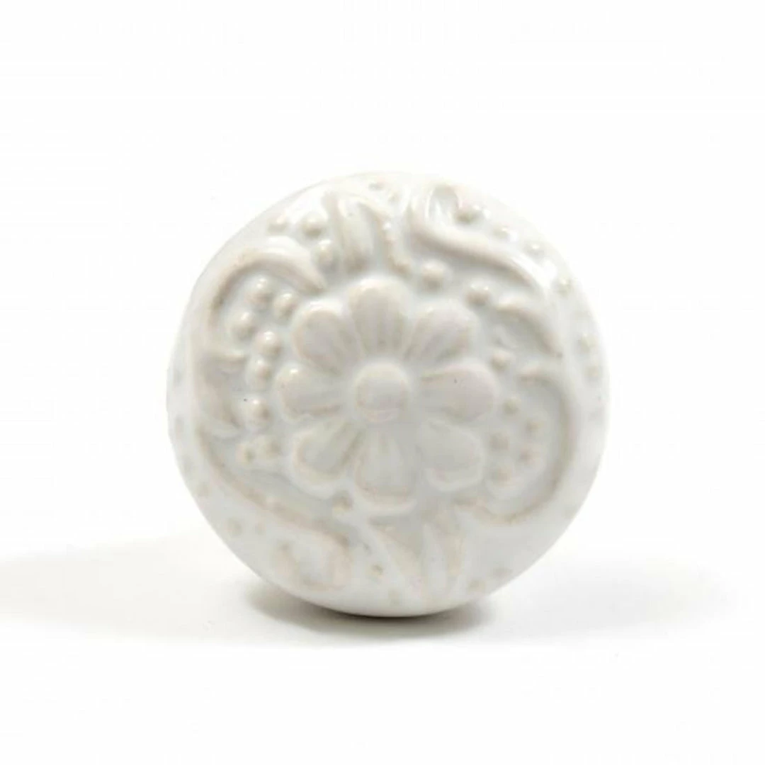 This Dritz Home ceramic embossed flower knob is a functional piece of hardware that can be used to replace or refresh knobs on furniture and cabinets, or to make DIY accessories.