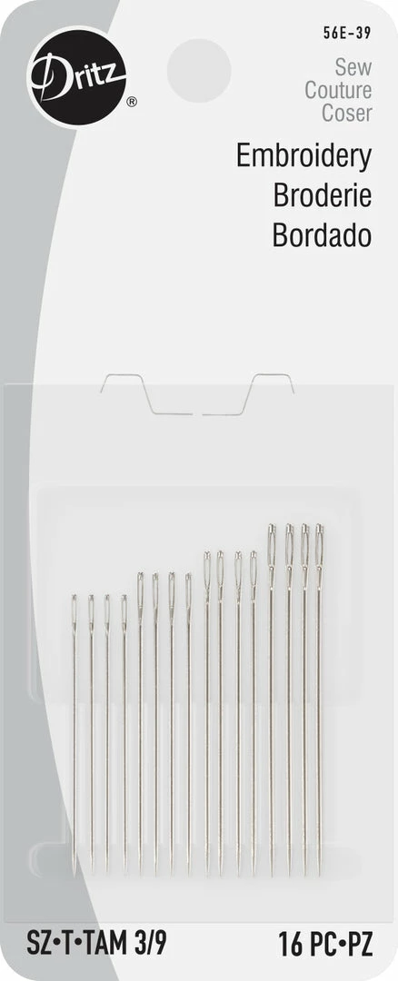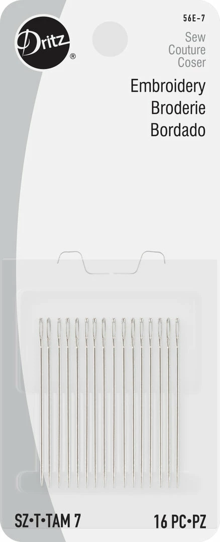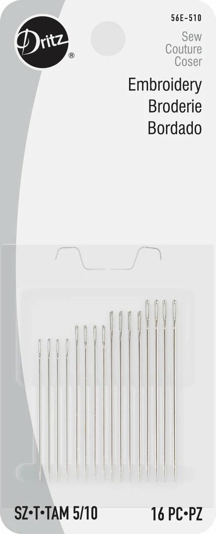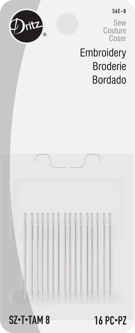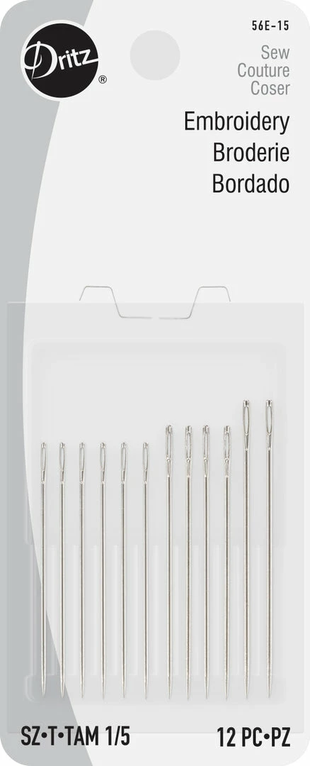 Use the Dritz Embroidery Hand Needles for your next sewing project. These hand needles can be used for cutwork, smocking, heirloom sewing and more. They are identical in thickness and length to sharps, but have longer eyes for convenient threading of multiple threads, pearls or floss.