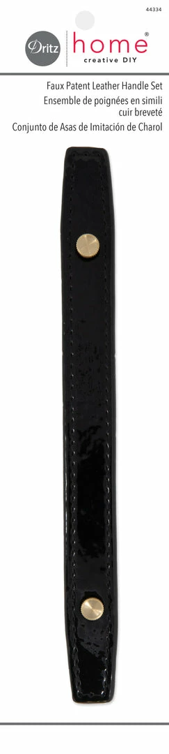 A Dritz Home faux patent leather handle set is used by DIY enthusiasts, sewists and craftsmen to customize cushions, baskets, storage and furniture with a functioning handle that can be grasped to open/close drawers or pick up cushions and pillows. The Dritz Home faux patent leather handle set includes one faux patent leather handle and two Chicago screws. The Chicago screws are hardware that fasten the handle to another surface, such as fabric or wood.