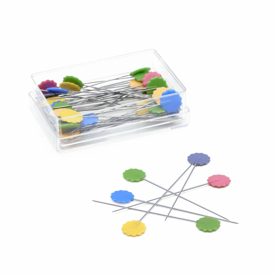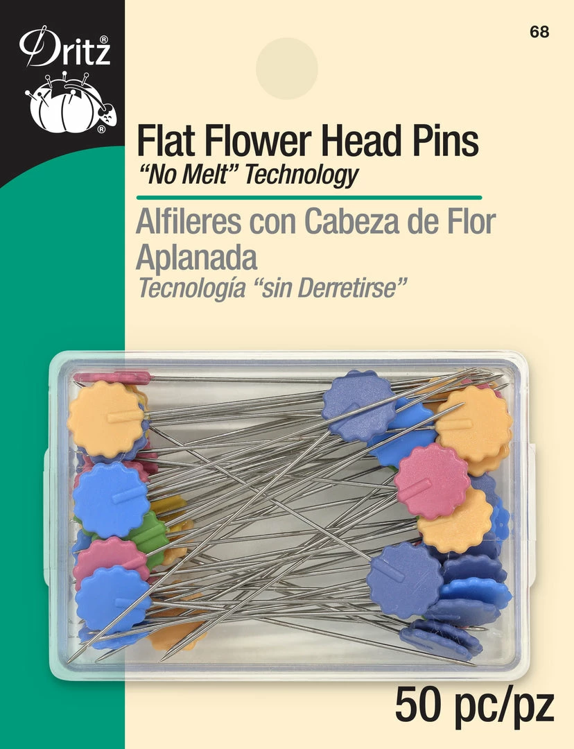Dritz Flat Flower Head Pins are cute multi-purpose pins and their large, flat heads make them easy to use. They are great for holding together stacks of fabric, and general sewing and crafting projects. Because of they feature a “No Melt” technology, they can be ironed over without leaving a trace on your fabric.