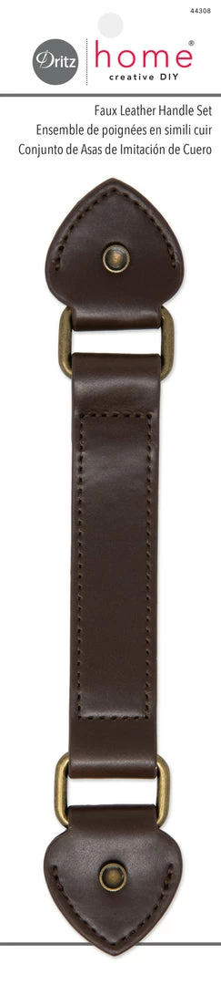 The Dritz Home faux leather handle set is used by DIY enthusiasts, sewists and craftsmen to customize cushions, baskets, storage and furniture with a functioning handle that can be grasped to open/close drawers or pick up cushions and pillows .Th leather handle set includes one faux leather handle and two Chicago screws. The Chicago screws are hardware that fasten the handle to another surface, such as fabric or wood.