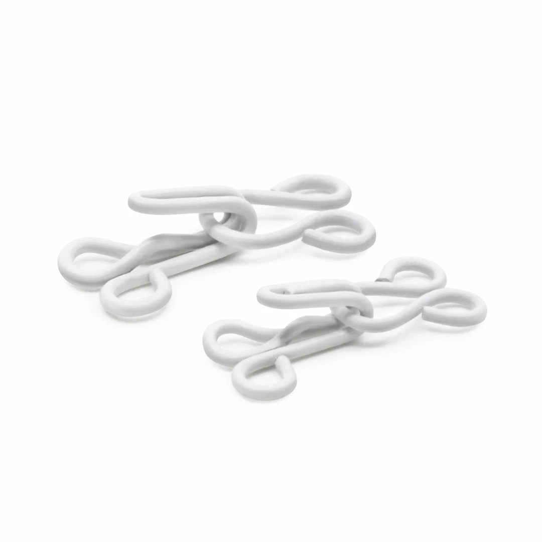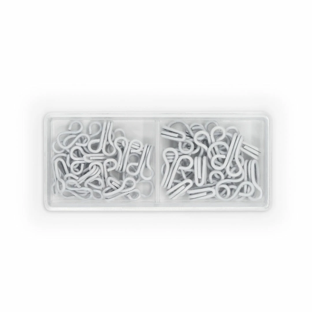 - Package contains (10) sets each of Size 1 and 2 Hook & Eye Fasteners, White