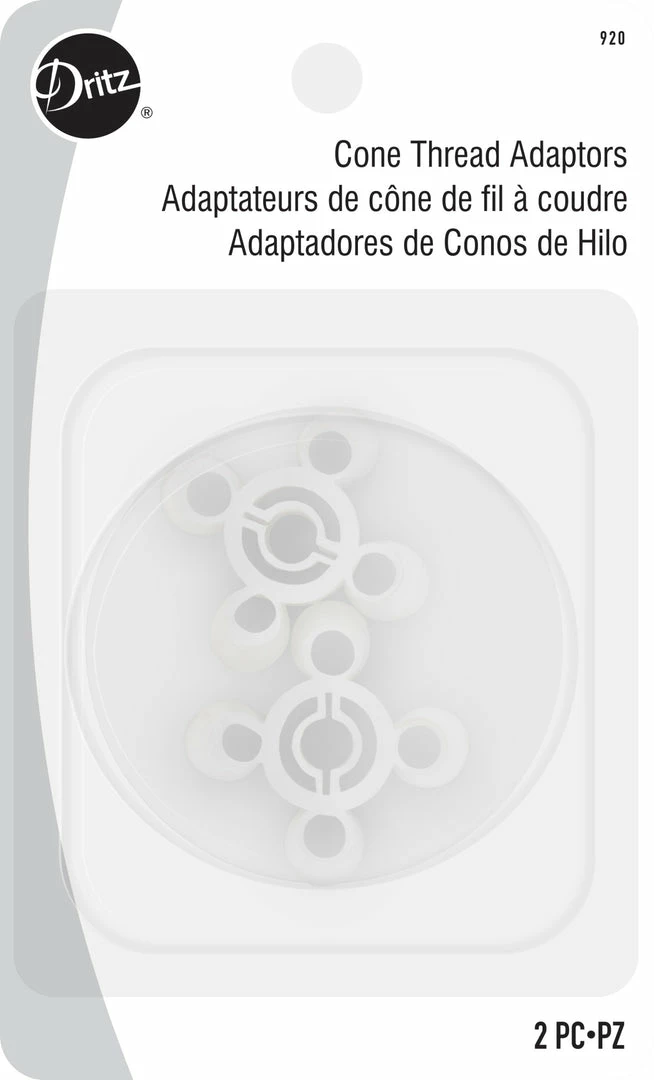Dritz Cone Thread Adaptors keep cones on the thread spindle and adapt cones for sewing machines and sergers.
