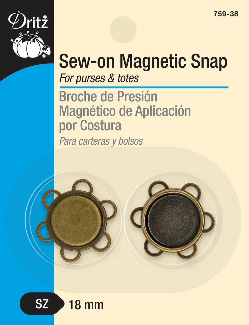 Dritz sew-on magnetic snap is a functional closure for the opening or pockets of purses, bags and totes. It can be used for sewing projects or added to store-bought accessories.