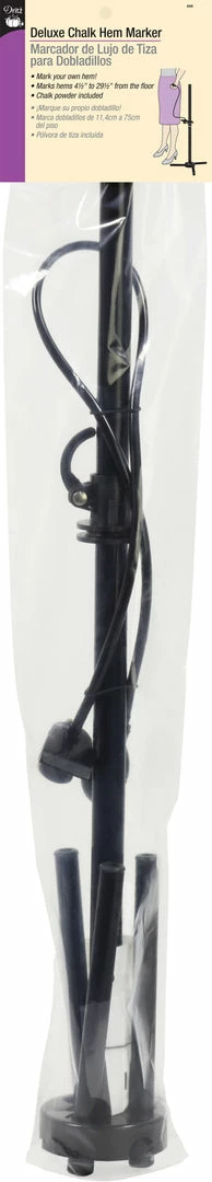 Dritz Deluxe Chalk Hem Marker is a unique product that gives you a seamless sewing experience. This package contains a chalk hem marker that can measure and mark hems from 4.5 to 29.5 inches off the floor and chalk powder. Its made of long-lasting plastic and the handle can simply be squeezed to dispense the chalk for accurate hem markings. The chalk hem marker can be folded for easy storage.