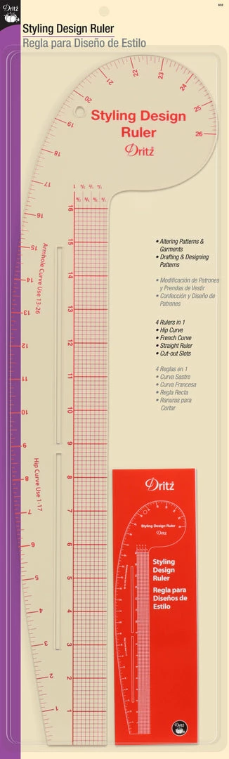 Use the Prym Dritz Styling Design Ruler to draft, design and alter patterns in an accurate manner. This design ruler contains a straight ruler, French curve, hip curve as well as cut-out slots. Style and cut your garments with great precision using this handy ruler. Detailed instructions and illustrations help you create your own apparel with the expertise of a skilled designer.